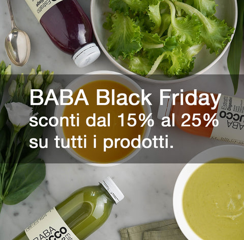 Metti al centro il tuo benessere questo Black Friday. Ogni passo che compi durante un percorso 𝐁𝐚𝐛𝐚𝐬𝐮𝐜𝐜𝐨 è un passo che compi per migliorare la tua salute. Scopri come purificare il tuo organismo in modo sano, ritrovare la tua energia naturale e ripristinare le connessioni più profonde e autentiche con il tuo io interiore.