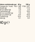 | VALORI NUTRIZIONALI | Per 100 g | Porzione (40g) |