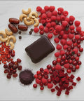 DATTERI - CIOCCOLATO FONDENTE 70% - ANACARDI - BACCHE DI GOJI - LAMPONE - BARBABIETOLA - ACAI - CRANBERRY - BAOBAB
