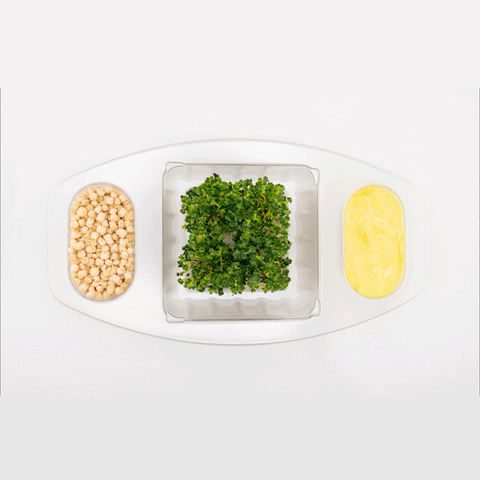 Unisce microgreen freschi arricchiti con chlorella e spirulina, crema proteica alla curcuma e un crunch croccante di pisello giallo, offrendo un’esperienza saziante e nutriente a basso contenuto calorico.